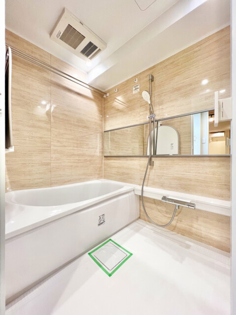 浴室は1216サイズ。追い焚き機能や浴室換気乾燥機などの便利機能も完備しています。雨の多いこれからの季節、天気を気にせずに洗濯機を回せるのは有難いですよね。