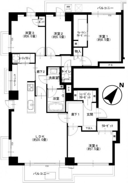 南西・北の3方角部屋、約110.12㎡の4LDK。