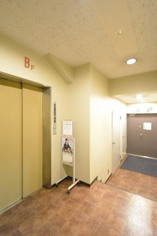 外へ通じる扉のあり、階段を上がるエントランスを通らずエレベーターを利用することもできますね!