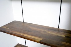 サニタリールームは洗面台とバスルーム、バスタオルやシャンプーのストックなどを置くのにちょうどよい可動棚があります。