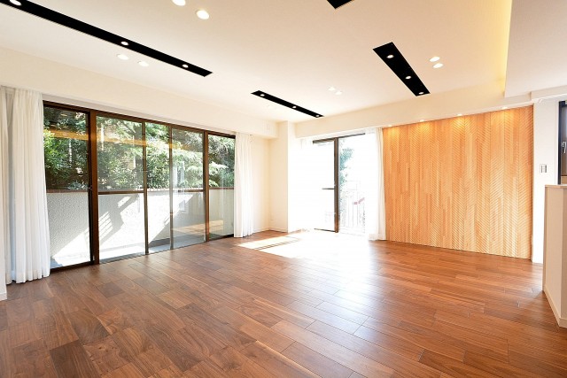 こちらの洋室とリビングダイニングを繋ぐバルコニーは敷地内の緑を望みます・。