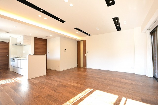 柱や梁の出っ張りが少なく、開放感のあるリビングダイニング。