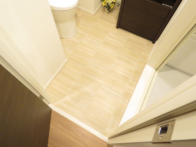シューズBOXのお隣に洗面室。トイレ、洗面化粧台、バスルームがまとまっています。