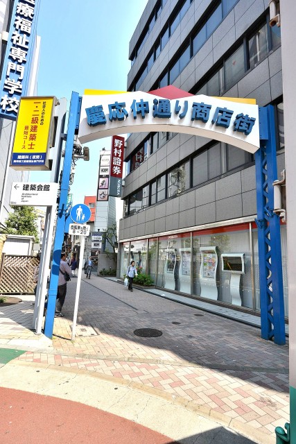 駅前に南北に走る第1京浜を渡ると、慶応仲通り商店街があります。