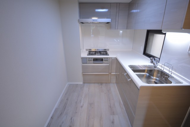 独立キッチンは動線が短くなり作業効率が良いL時キッチン。