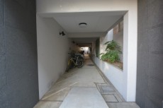 オートロックを抜けるとコンクリート打ち放しの吹き抜けから、