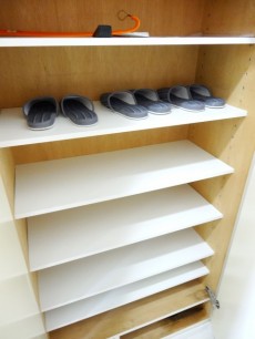 玄関を入ると右側に天井まで高さのあるシューズBOXが設置されています。棚の高さも調節できるのでブーツも仕舞っておけて便利です。