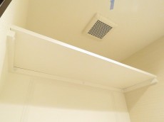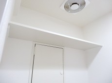 洗面室の扉の向かい側は可動棚付きの物入れが設けられています。日用品のストックを仕舞う他、場所的にリネン類を仕舞っておくのにもよさそうです。