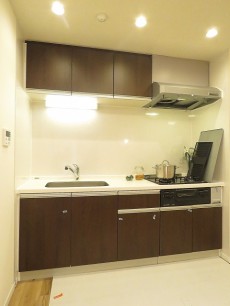 キッチンは上下に収納スペースたっぷり!大きなお鍋やフライパンもすっぽり仕舞っておけそうです。コンロはお料理がはかどる3口コンロです。