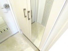 玄関横にはたっぷり靴が仕舞えるトールサイズのシューズBOXが設置されています。表扉の一部には縦長の鏡がついており、お出かけ前の身だしなみチェックもサッと済ませられ便利です。