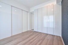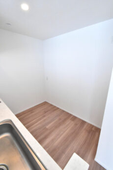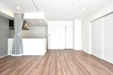 縦長のお部屋と違ってレイアウトの自由度も高くなっています。大きなソファーを置いて居心地の良い場所を作るもよし、小さめの家具でスぺースを生かした空間造りをするもよし。ライフスタイルに合わせた自分ならではのお部屋を創っていきましょう。エアコンはお部屋の雰囲気の邪魔にならないビルトインタイプ。LDKには床暖房も設置されているので、エアコン暖房が苦手な方も快適に冬を過ごしていただけます。