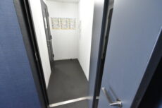 ドアを一枚抜けると風除室になっています。ここから先にはオートロックのキーを持っていないと入れません。キーはタッチレスなのでいちいち鍵を差し込んだりしなくて大丈夫です。