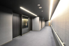 エレベーターを降りるとホテルライクな内廊下。カーペットで足音も軽減され、空調がきいた快適な空間です。30度超えの中歩いて来た身にはたまりません(^^♪
