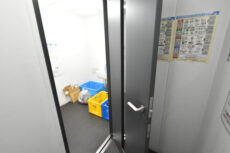 各階にこのようなゴミ置き場があり、ゴミを持ってエレベーターに乗る必要はありません。廊下に臭いが漏れたりしないよう、しっかり二重扉になっているのもいいですね。