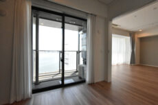 東京湾を望むダイレクトウィンドウ。 6階以上の全戸には高さ2.35mの大きな窓が設置され、東京湾や都心の美しい景色を一望することができます。