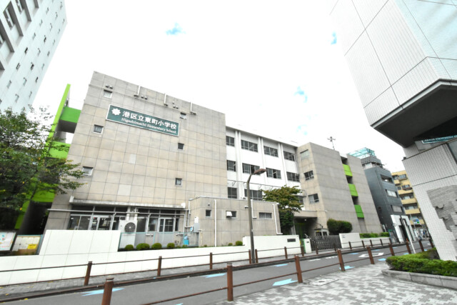 こちらはマンションから徒歩2~3分の「港区立東町小学校」です。こんなエリアにも小学校はあるんですねー!グリーンがアクセントカラーの味のある建物ですね!