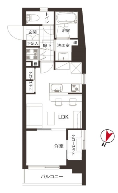 こちらのお部屋はコンパクトながら、水廻りは全て廊下から出入りできるようなプランになっております。