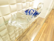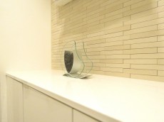 玄関扉を開けた時にもチラリと見えますが、廊下の壁面にはガラス棚のついたカウンターが設置されています。お気に入りのインテリアや写真などを飾って自分好みの空間をつくってみてはいかがでしょうか?気に入った物に囲まれて暮らせます。