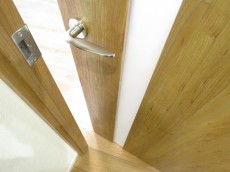 玄関から一番近い扉は洗面室。洗面化粧台、洗濯機置場、トイレ、バスルーム、と水まわりの設備はこの中にまとまっています。お掃除もまとめてこなしやすいのではないでしょうか。