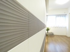 シューズBOX側の壁面には調湿・消臭効果のあるエコカラットが使われています。見た目もオシャレながら機能面が優れているのもうれしいところ♪