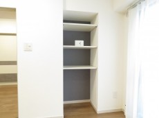 洋室内にはクローゼット、可動棚付収納が2か所と収納スペースがたっぷり。