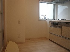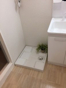 洗濯機置き場です。右側に少しスペースがあります。このスペースにあわせてスマートなラックなど置いても良さそうですね。