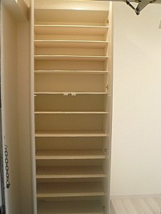 玄関左手にはシューズボックスシューズボックスが付いています。内部の棚は高さの調節ができるのでブーツなどの背の高い履物でも問題なく収納することができます。