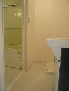 サニタリールームです。左側に浴室 右側に沿面化粧台並びに洗濯置き場になります。
