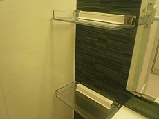 鏡のサイドは、洗面周り小物を置いておけそうな棚になっています。
