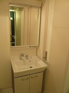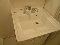 シンプルなタイプの洗面台ですね。収納スペースは少ないですが、その分薄く作られていて洗面室を広く使う事ができます。