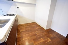 キッチンスペースも広々としていて、冷蔵庫以外にもキャビネットなども十分置けそうです。