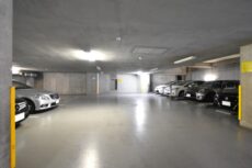 駐車場はもう一か所あって、アプローチに入らず道路を少し進んだところを横道に入るとシャッターが閉まった駐車場入口があります。こちらは大切な車を雨風や紫外線から守る完全室内タイプ。