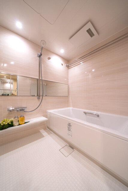 浴室は温かみのある木目調パネルを使用。穏やかな雰囲気でリラックスしたバスタイムを過ごせそうです。浴室換気乾燥機付きなので、天気を気にすることなくお洗濯ができますよ。もちろん追い焚き機能付き!