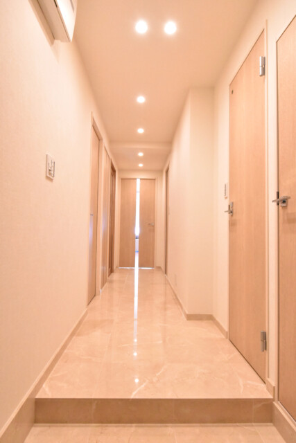玄関から廊下にかけては高級感のある大理石仕上げ。