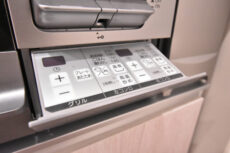 コンロは3口、グリル付き。温度設定やタイマー機能などが付いた高機能タイプです。自宅以外のキッチンを見る機会があまりないこともあって、こんなことができるようになっているとは数年前まで知りませんでした。歳をとって鍋を焦がすようになる前に我が家も是非交換しておきたいものです。