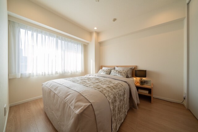 南東向きバルコニーに面したお部屋です。腰高窓なのでバルコニーに出ることはできませんが大きさがあって採光は抜群。朝起きてカーテンを開ければ体内時計もリセットされ、気持ち良く目覚められますよ♪