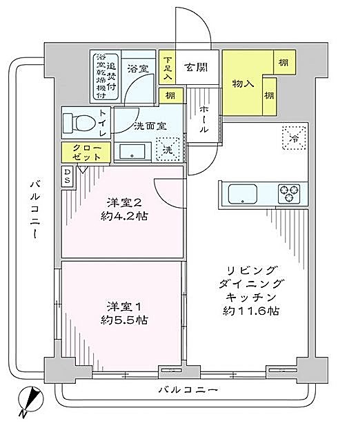 東側のバルコニーは5.5帖の洋室から、北側は同じく洋室とリビングから出ることが出来ます。