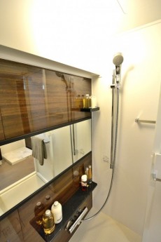 バスルームは長い鏡が付いているのでとても広く感じます。追い焚き機能付きなので、水道代を節約しながらゆったりとしたバスタイムを楽しんでいただく事ができますよ(#^.^#)
