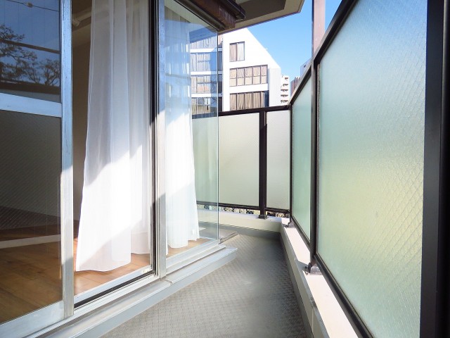 約4.98㎡、東・北向き。すりガラスがついた手すり部分は高さがあるので外からの視線は気にならなさそうです。陽気がいい日は窓をあけて過ごすのもいいかも!