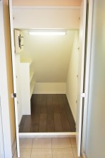 玄関左側にシューズBOXではなく、シューズインクローゼットでした!ちょうど3階への階段下の部分が収納スペースになっていて、シューズ以外にもトランクケースやゴルフバックなども収納できそうです。