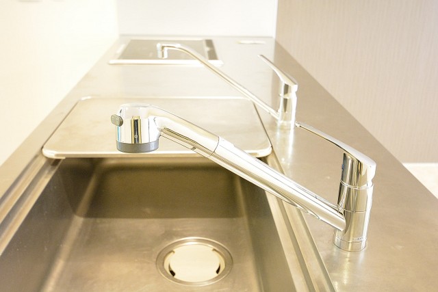 お掃除もらくらくフルフラットキッチンは水栓が2つあり、一方はシャワー水栓になっています。