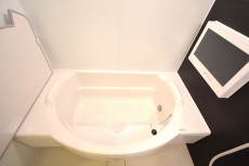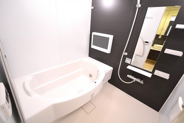 広々としたバスルームには21型TVがありました!浴槽も広々シェル型!