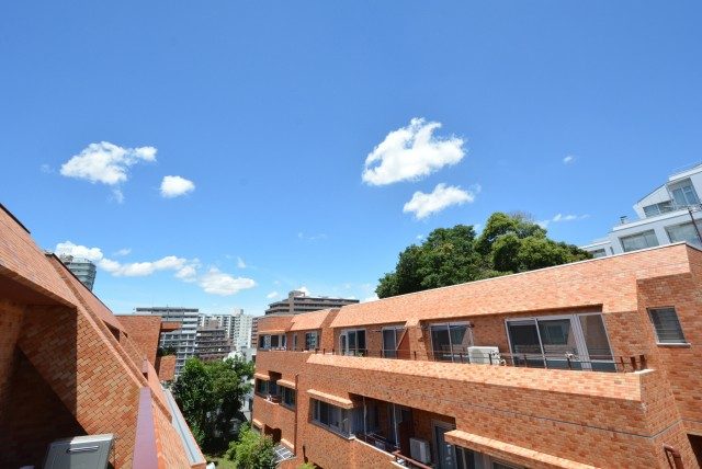 前に見えるのはお向かいの棟です。中央を通っている道の幅が広いので開放感のある眺望となっています。