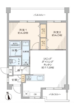 広さを無駄なく使った間取りになってます。南北にバルコニーがあって風通しが良さそうですね。では行ってみましょう!