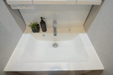 真っ白で清潔感のある洗面台です。