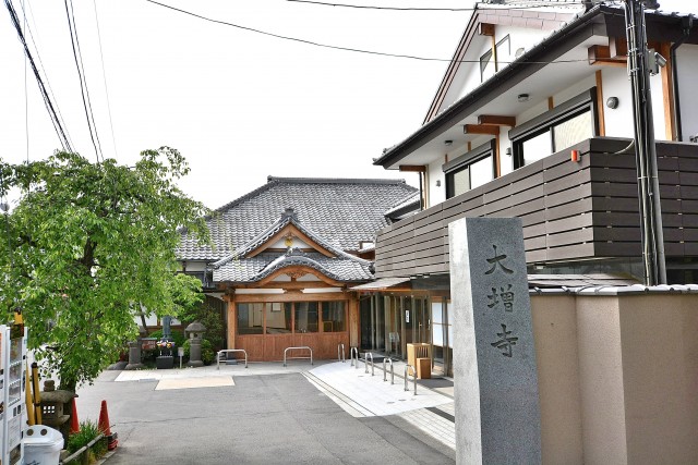 目に飛び込んできたのは、銀色に光る屋根と青い空でした。屋根はここに来る時に通った大増寺の屋根です。照り返しで眩しいくらいです。