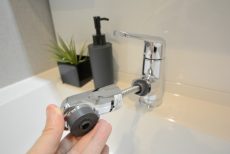 シャワー水栓はヘッドが伸びて、シンクや大きいお鍋のお掃除に便利です。