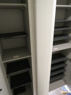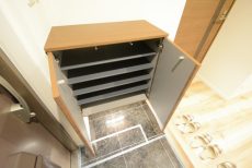 1歩中に入ると目に入るのはたっぷりした収納。ハイタイプとメゾネットタイプの組み合わせで、収納力たっぷりです。