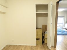 LDKと同じ南東向きバルコニーに面したお部屋です。南西側にも窓があり明るいのはもちろん風通しもよさそうですね。天井までの高さがある大きなクローゼットが付いているので、お部屋を広く使うことができますよ。