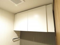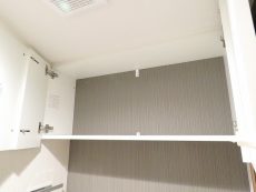隠しておきたいストック類やお掃除グッズの整理も出来る吊戸棚付きです。